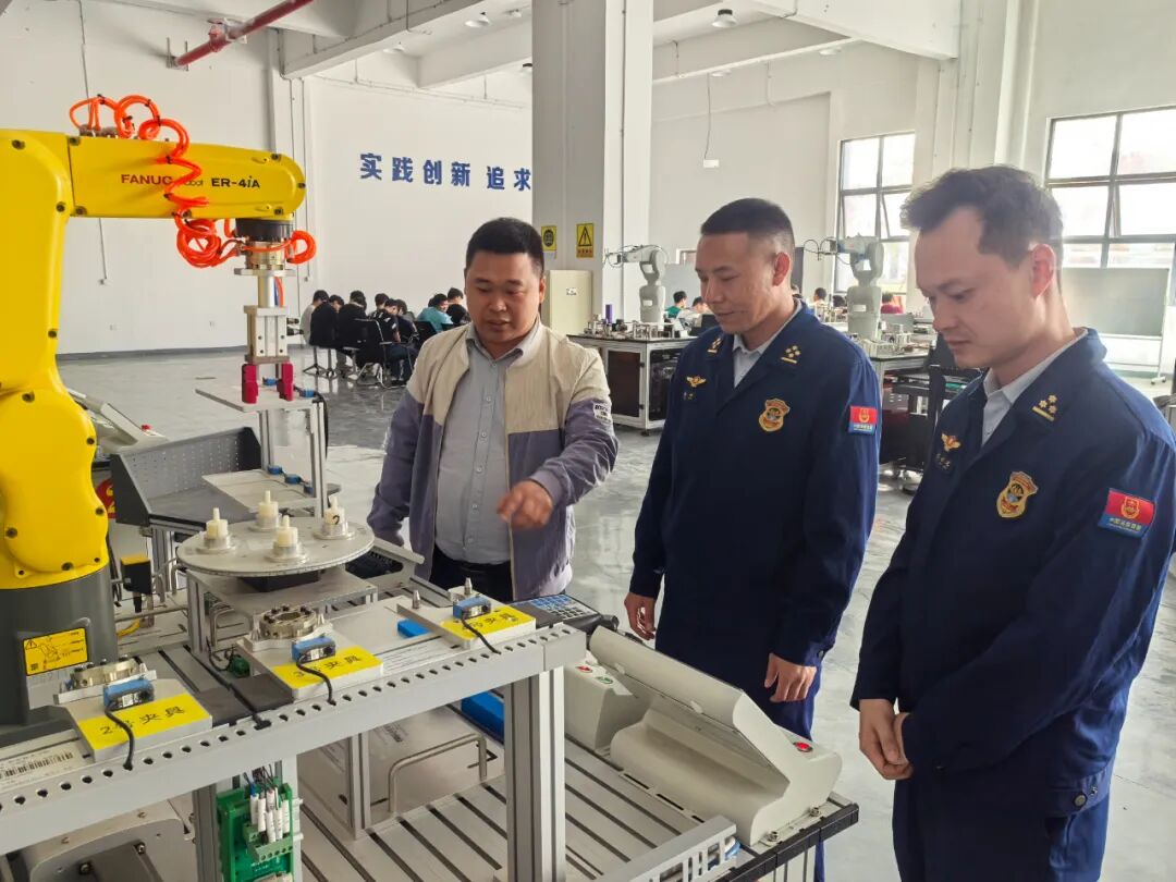 随后,与会人员参观了铜仁职院工学院专业实训室,张荣芳省级技能大师工作室,机电创新工作室,进一步加深了相互了解和信任。最后,消防宣传员组织带领500余名师生开展了疏散逃生演练并围绕灭火器实操进行消防知识科普。通过模拟真实场景、手把手教学等方式,切实提升了师生们的应急自救能力。