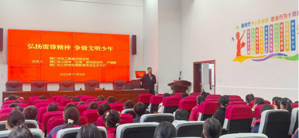 此次宣讲由铜仁市关工委宣讲团成员、铜仁幼儿师专“五老”报告团成员、铜仁幼儿师专初等教育系党总支书记卢道静担任主讲人,他以“弘扬雷锋精神 争做文明少年”为主题,用生动鲜活的语言、翔实感人的事例,为现场师生带来了一场兼具思想性与感染力的宣讲。