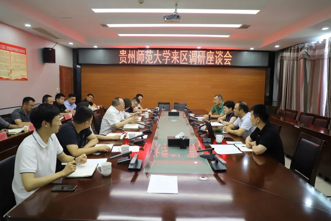 8月21日,贵州师范大学新校区办公室副主任黎仕兰带队来区调研并召开座谈会。区党工委书记钱刚出席会议并讲话,区党工委委员、管委会副主任付惠玲出席会议,区管委会副主任刘桐陪同调研并主持座谈会。