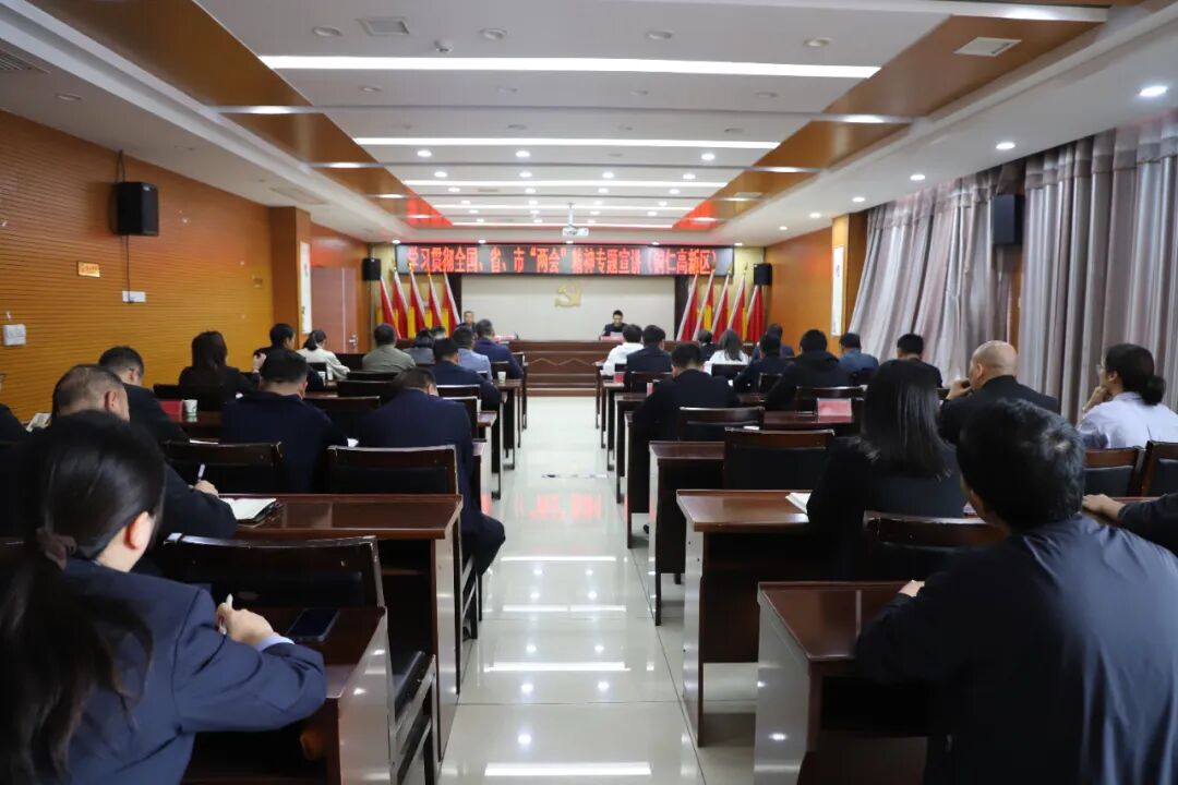 4月8日,铜仁开放大学党委副书记、校长、副教授张成勇到铜仁高新区开展学习贯彻全国、省、市两会精神专题宣讲。区党工委委员、组织人事部部长许胜东主持。