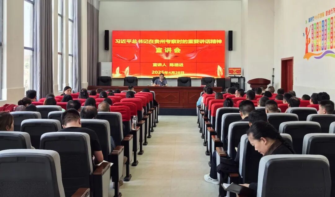 4月28日,区党工委委员、纪检监察工委书记陈德进到大兴街道教育系统宣讲习近平总书记在贵州考察时的重要讲话精神。大兴街道各中小学、幼儿园负责人及部分师生代表参加宣讲会。