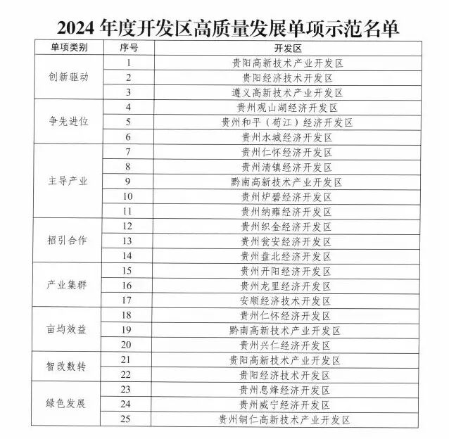5月6日,省推进开发区高质量发展领导小组办公室公布了2024年度开发区高质量发展单项示范名单,贵州铜仁高新技术产业开发区榜上有名!