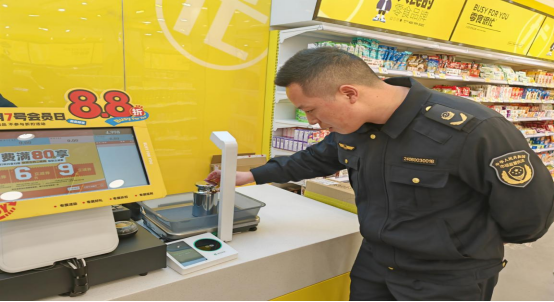 本次检查主要针对食品经营单位者的证照是否齐全、从业人员健康体检状况、建立食品采购索证索票、进货查验和采购记录制度情况、生产经营食品保质期情况、生产经营场所卫生状况等。压实食品经营户主体责任。检查中,执法人员现场对商超使用电子秤进行检定,确保在用电子秤100%合格。检定过程中,当场向商户介绍了电子秤的日常维护和正确使用方法等计量器具有关知识。此次行动共检查超市5家、便利店6家。